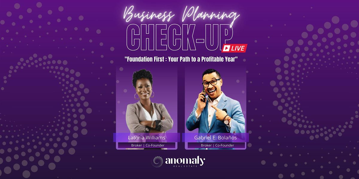 Join us for an intentional Business Plan Check-Up led by Latoria Williams & Gabriel Bolaños, brokers and co-founders of Anomaly Real Estate, designed to help you pause, refocus, and realign your goals for a profitable and purpose-driven year.