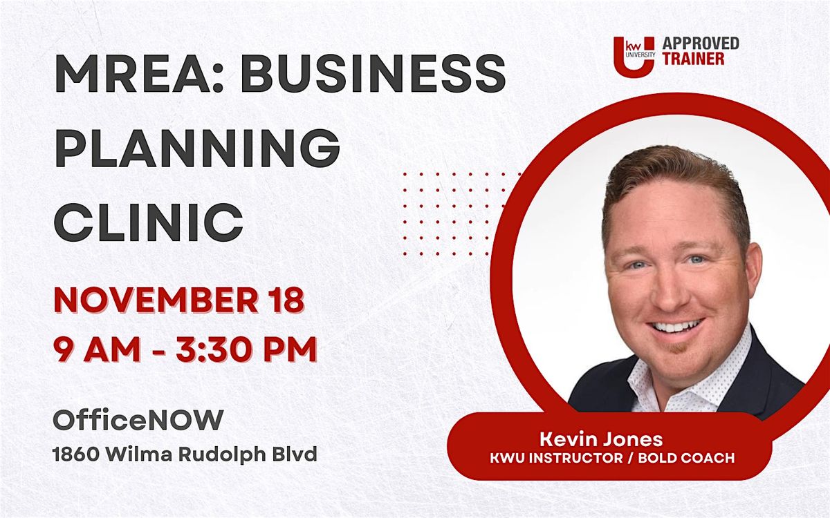 The Business Planning Clinic is designed to help real estate professionals take control of their business with clarity, focus, and proven models. Using the tools and systems from the Keller Williams training path, this clinic guides agents step-by-step through the process of setting purposeful goals, analyzing financials, and building an action plan for the year ahead. Join KW University Instructor & BOLD Coach, Kevin Jones for this energetic event.