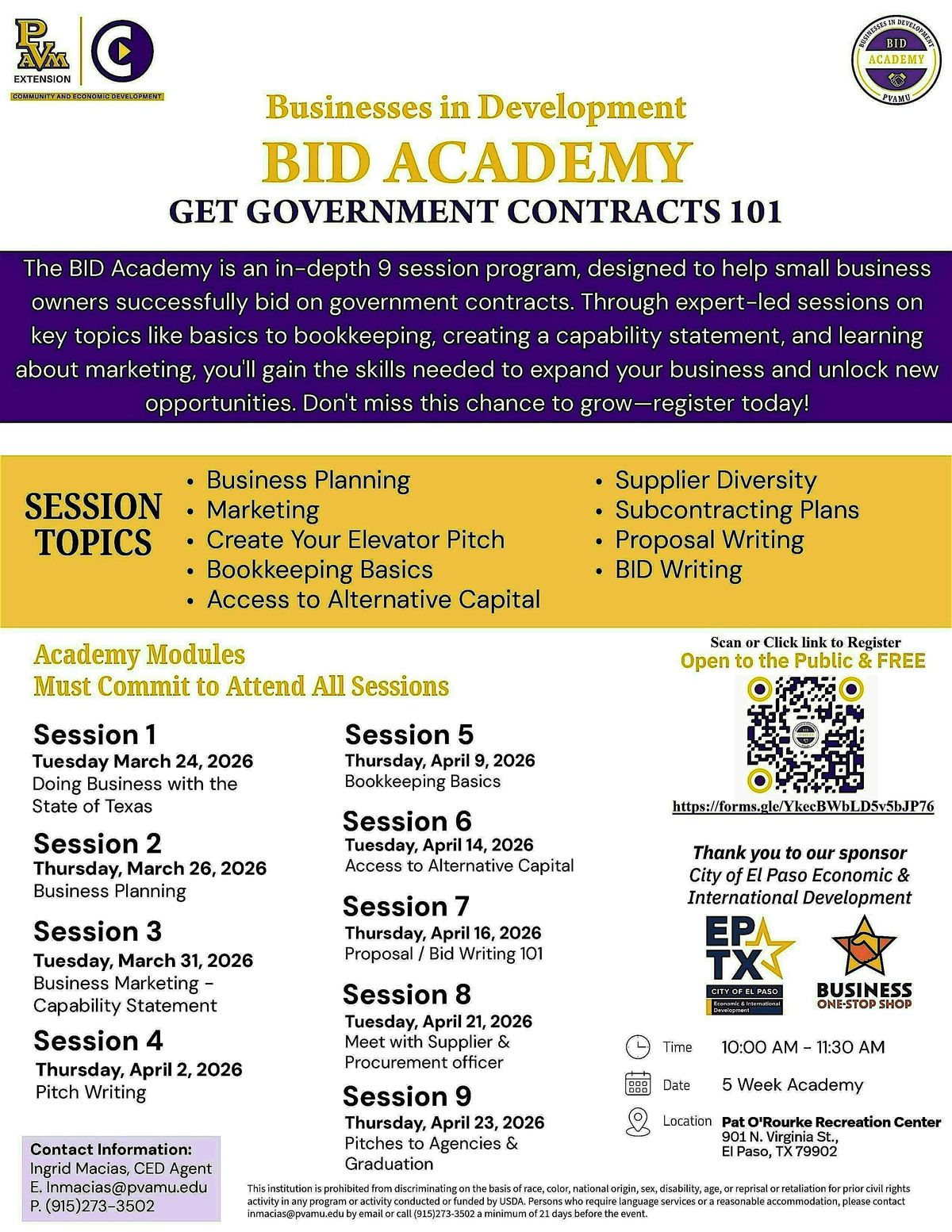 Businesses in Development (BID) Academy - Get Government Contracts 101