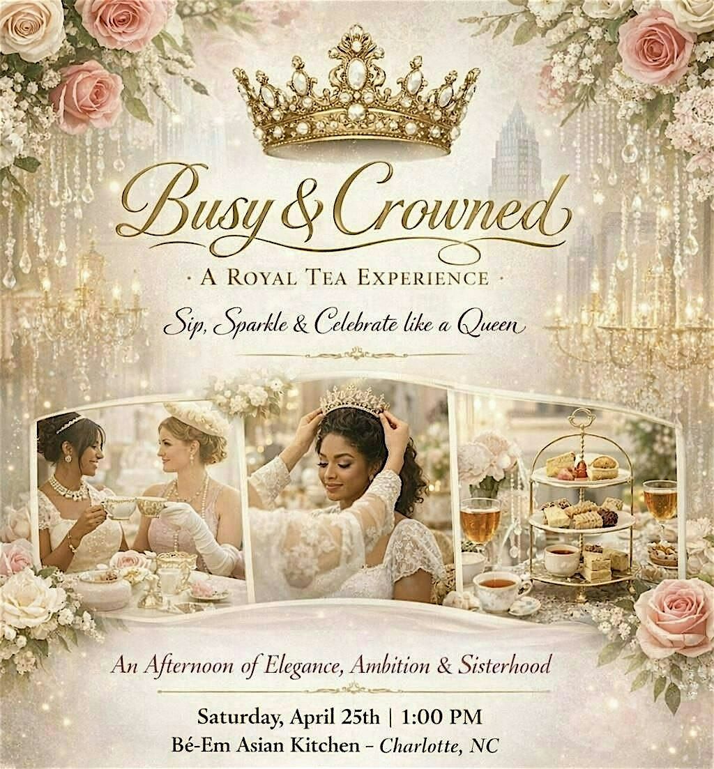 Join us for Busy & Crowned: A Royal Tea Experience—where the queens of the Queen City gather to sip, sparkle, and celebrate the journey of ambitious women everywhere. Step into a world where ambition meets grace, and every Charlotte Duchess gets the royal treatment she deserves. At Busy & Crowned, we celebrate the women who run the world, keep their crowns polished, and still make time to pour into themselves.