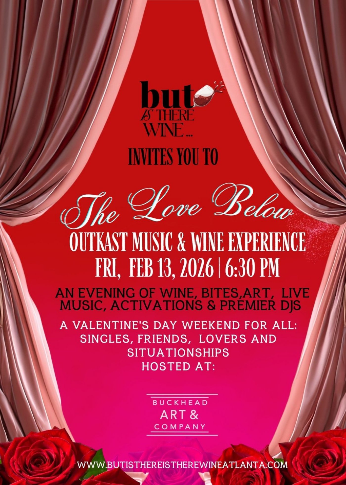 "But, Is There Wine?!" The Love Below Edition is a Valentine’s/Galentine’s-inspired night celebrating love in all its forms: friendship, romantic love, self-love, messy love, soft love, and unconventional love — inspired by OutKast’s iconic The Love Belowalbum.