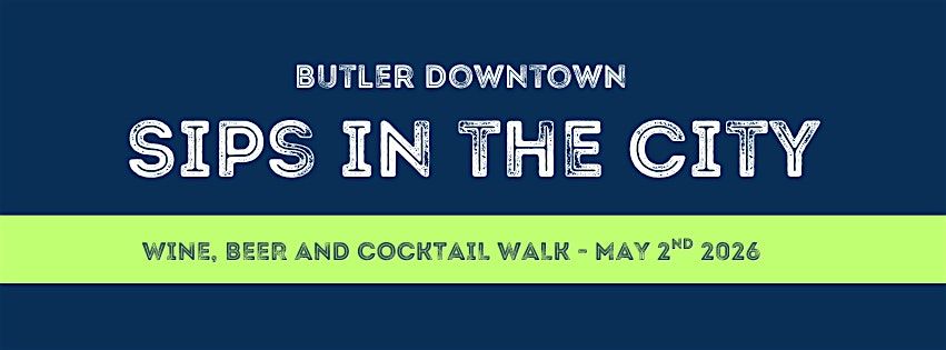 Welcome to Butler Downtown Sips In The City! Join Butler Downtown and participating local businesses for the 4th Annual Sips In The City - a Wine, Beer & Cocktail walk on Main Street Butler, PA. Enjoy wine, beer, and distillery tastings, giveaways, and shop local!