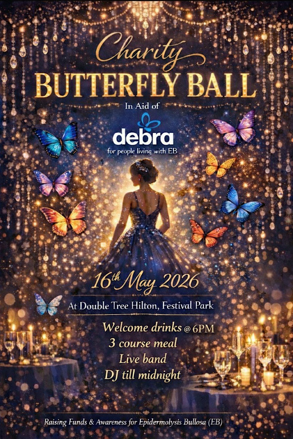 Get ready for an unforgettable night at the Butterfly Ball! This in-person event promises a magical atmosphere filled with vibrant colors, lively music, and great company. Whether you're looking to dance the night away or just soak in the beautiful vibes, the Butterfly Ball has got you covered. If you do not live local- No problem- Why dont you book your overnight stay at the venue- with a Hilton breakfast in the morning!