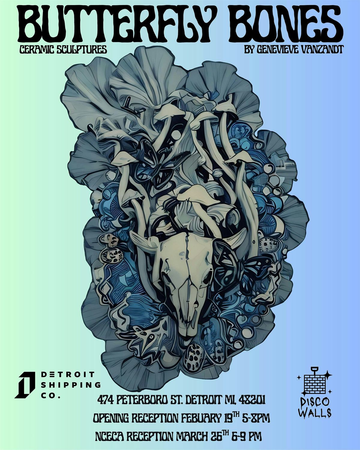 Detroit, MI — DSC is pleased to present Butterfly Bones, a ceramic art exhibition on view for one night only on February 19, 2026, from 5:00–8:00 PM.