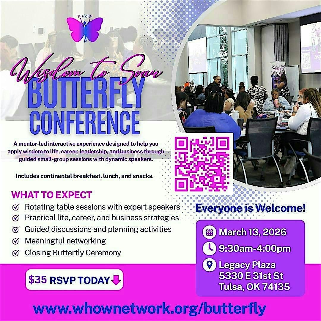 The Butterfly Conference 2026 is a professional, mentor-led experience designed to help participants apply wisdom to life, career, leadership, and business. This interactive event brings together dynamic speakers, experienced mentors, and engaged participants for guided small-group sessions that focus on clarity, strategy, and intentional growth.