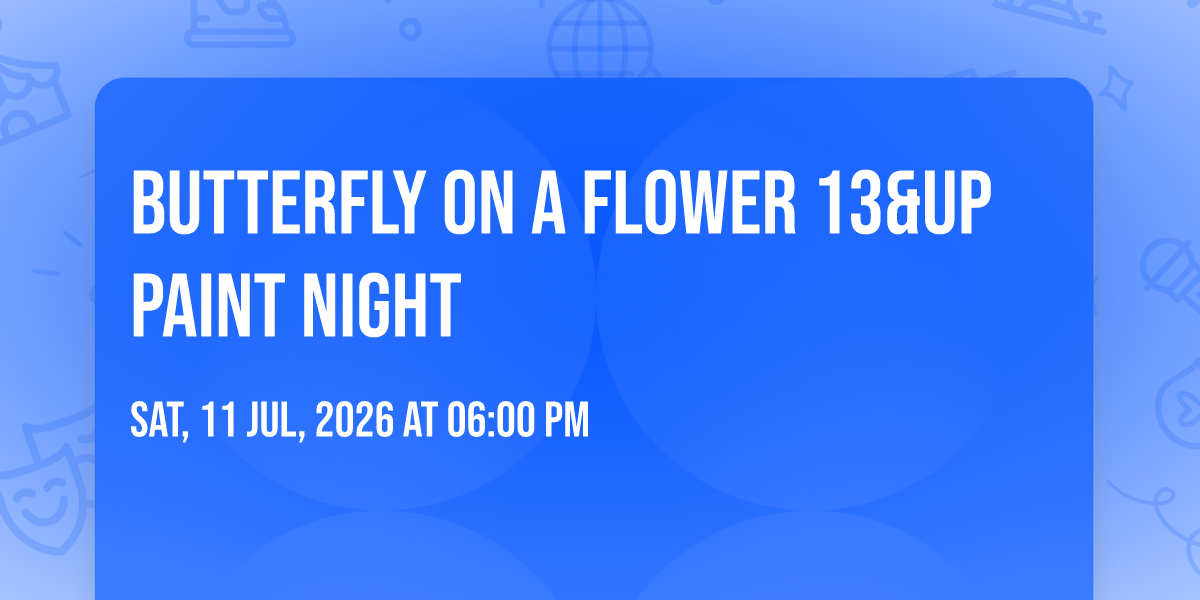 Cost $40/pp. This is a 13&Up EventOn a 16"x 20" canvas, unleash your creativity as you paint a stunning butterfly resting on a vibrant flower, surrounded by a dreamy starry sky. No experience necessary.