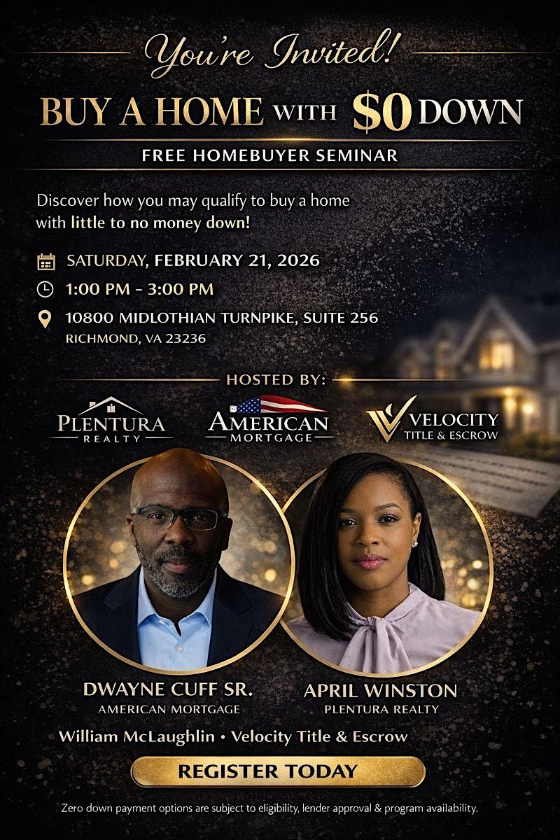 BUY A HOME WITH $O DOWN..FREE HOMEBUYER SEMINAR