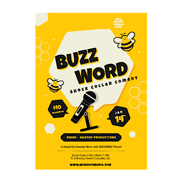 Join us for Buzz Word Comedy, the wildest, most unpredictable stand-up show you’ll ever witness! Our brave comics hit the mic, but every time they drop an unapproved word—ZAP! 🔥