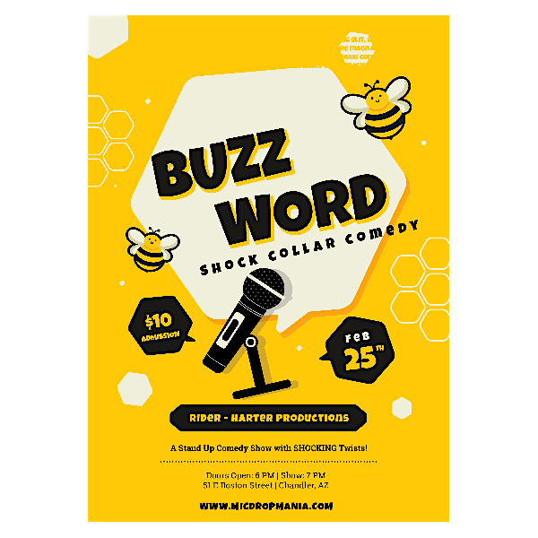Join us for Buzz Word Comedy, the wildest, most unpredictable stand-up show you’ll ever witness! Our brave comics hit the mic, but every time they drop an unapproved word—ZAP! 🔥