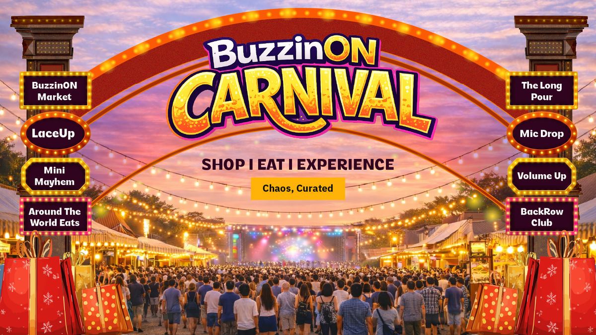 BuzzinON CARNIVAL — BANGALOREStep into a full-scale lifestyle festival where shopping, food, music, culture, and chaos collide.BuzzinON Carnival transforms the iconic Indiranagar Club — located in the very heart of Bangalore — into a high-energy, immersive playground for the city’s most vibrant crowd. An experience of this scale has never unfolded in the hub of Indiranagar before.From curated shopping and global food discoveries to beer gardens, live entertainment, sneaker culture, kids’ zones, and unexpected moments — every corner is designed to keep you exploring, engaging, and coming back for more.Expect statement fashion, incredible food, electric atmosphere, and a buzzing crowd — all in one unforgettable environment.What to expect:Curated Shopping MarketplaceAround The World Food ExperiencesBeer & Cocktail GardensLive Music & EntertainmentSneaker & Street CultureKids & Family ZonesExperiences, Pop-ups & SurprisesThis is where the city gathers.This is where the energy shifts.