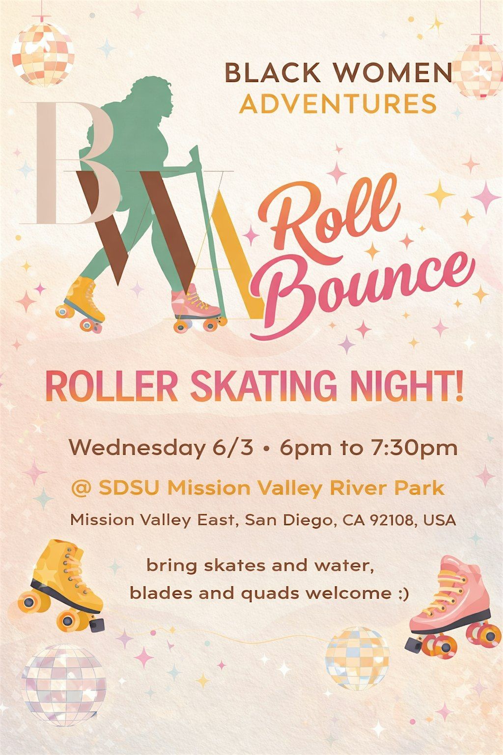 Join Black Women Adventures for our Roll Bounce: Roller Skating Night πΌβ¨
