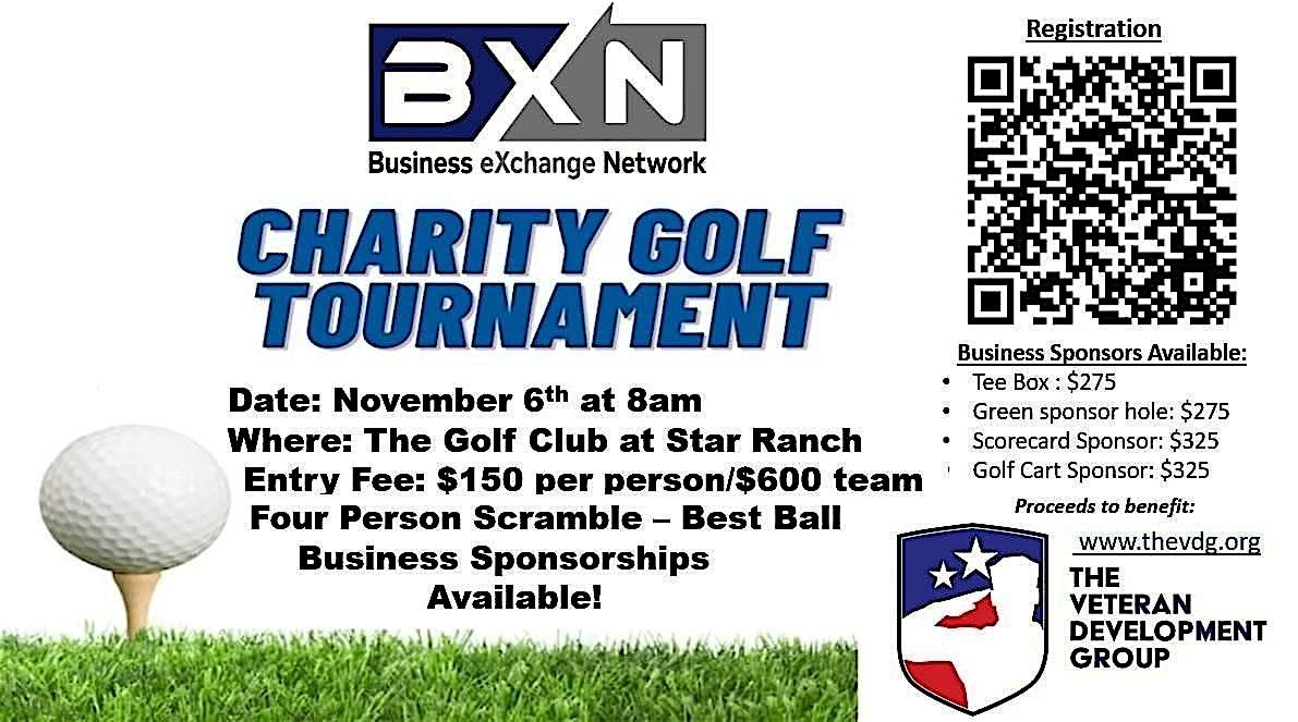 The Fall 2025 BXN Golf Charity Classic is shaping up to be another successful tournament. We encourage you to secure your team and/or sponsorship today. The proceeds collected will be distributed to The Veteran Development Group. Website: www.thevdg.org The VDG is a nonprofit organization dedicated to helping military service members and veterans transition to civilian life. The group's mission is to train, educate, and mentor veterans, guiding them through the transition process to ensure success in both their military careers and beyond.