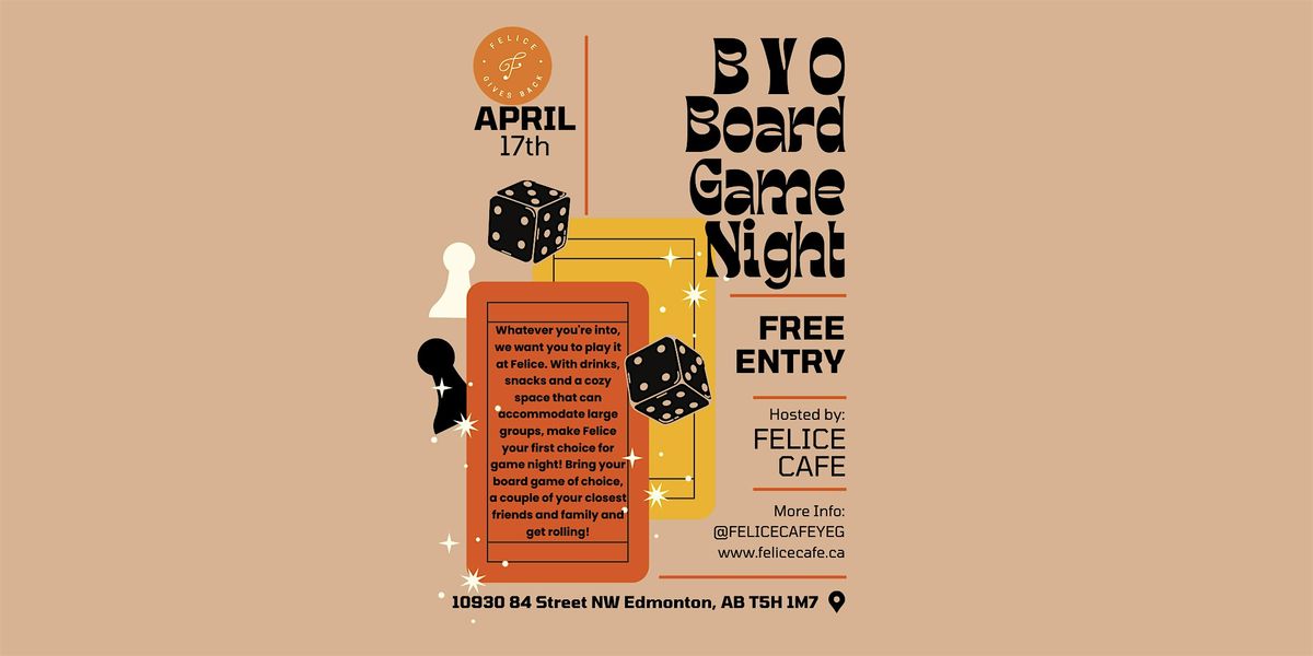 Attention board gamers! Felice Cafe is holding our first ever Bring Your Own Board Game night! Are you a fan of the oldies? Monopoly, Sorry!, Backgammon, or Risk?
