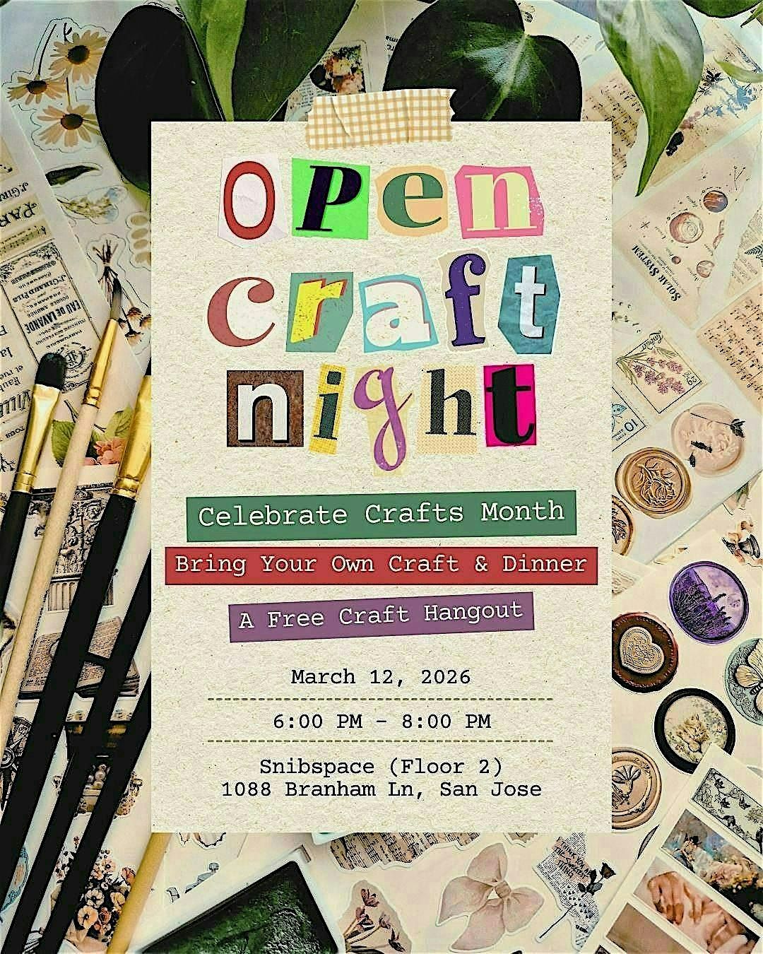 Open Craft Night at Snibspace is all about hanging out, making things, and celebrating creativity together. Come as you are, bring what you love, and just enjoy a night of crafting and community.