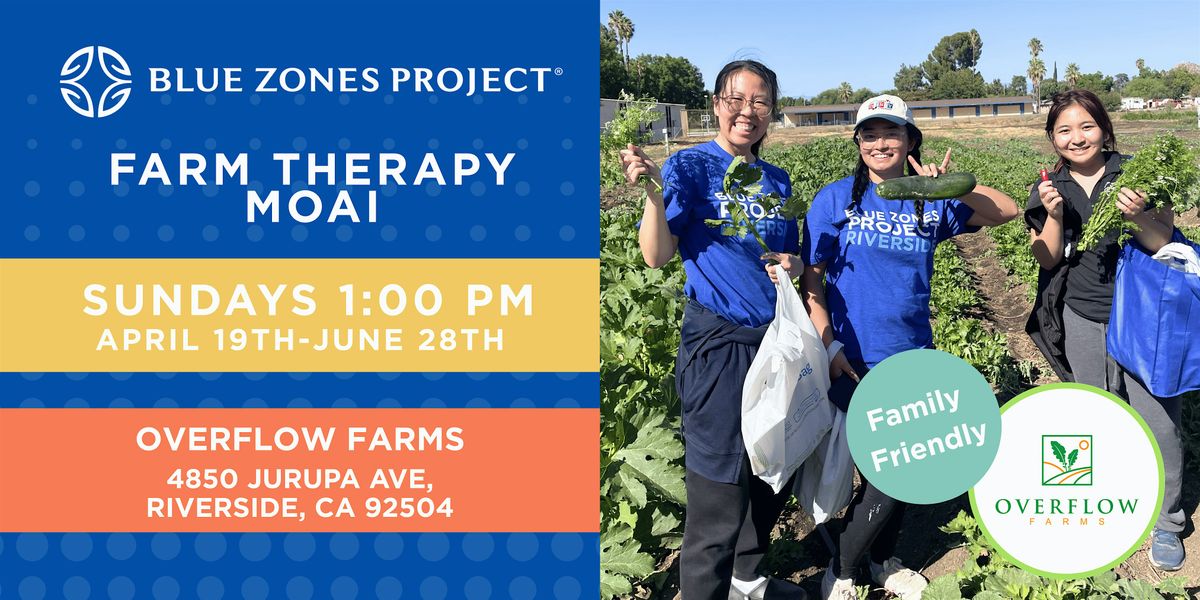 Join us for the Blue Zones Project Farm Therapy Moai at Overflow Farms β a 10-week experience where families and kids come together to plant, tend, and harvest alongside one of Riverside's most beloved community treasures. More than just gardening, this is a space to build real friendships, learn where your food comes from, and reconnect with nature.