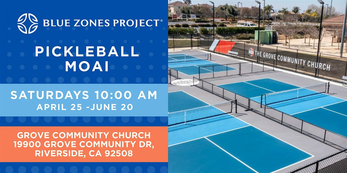 Join us for our Blue Zones Project Pickleball Moai at the Grove Community Church - a fun, social experience rooted in connection, movement, and friendly competition. Inspired by the Okinawan tradition of moai, this is more than just a game. It’s a chance to build lasting friendships, stay active, and enjoy the energy of playing together.