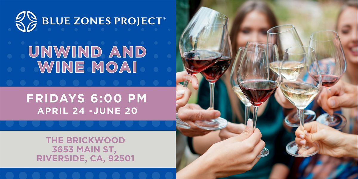 Join us for the Blue Zones Project Unwind with Wine Moai , a 10-week Friday evening experience where young professionals, wine enthusiasts, and anyone craving real connection come together to exhale, laugh, and toast to the weekend in one of downtown Riverside's most beloved spots.
