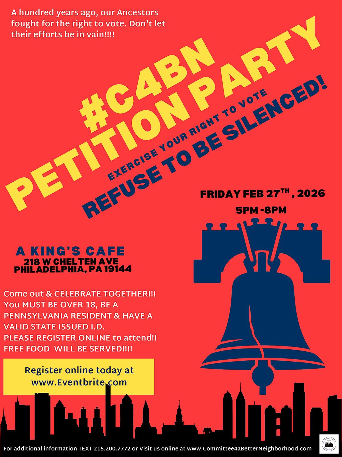 Join us for the #C4BN PETITION PARTY – an awesome in-person gathering where we’ll come together to make a difference! It’s the perfect chance to connect, sign petitions, and have a blast with Committee 4a Better Neighborhood. Don’t miss out on the fun and the impact. See you there!