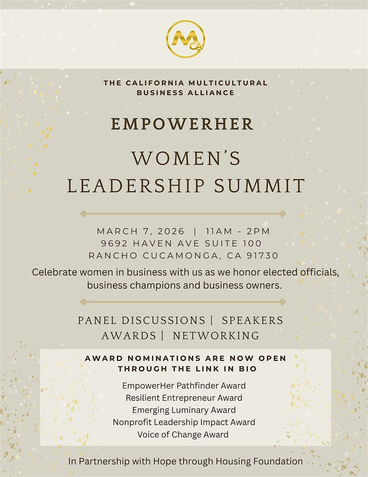 EmpowerHER is the California Multicultural Business Alliance’s signature gathering for women entrepreneurs, executives, and community leaders who are building businesses with purpose and measurable impact. Join us for practical learning, high-value connections, and real conversations about leadership, growth, and navigating today’s business landscape.