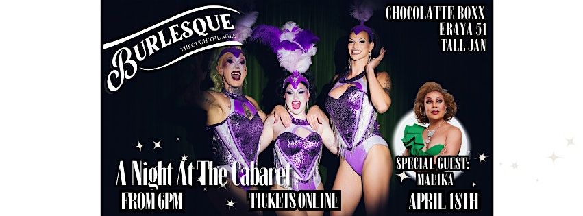Get ready for a night full of glamour, fun, and sass at The Raven! Join us on April 18, 2026 at 6:00 PM (AEST) for an unforgettable in-person cabaret experience that celebrates burlesque through the ages. Whether you're a longtime fan or new to the scene, this event promises laughs, stunning performances, and good vibes all around. Don’t miss out on this unique night of entertainment! Featuring, one night only, Australian DRAG ICON Malika!