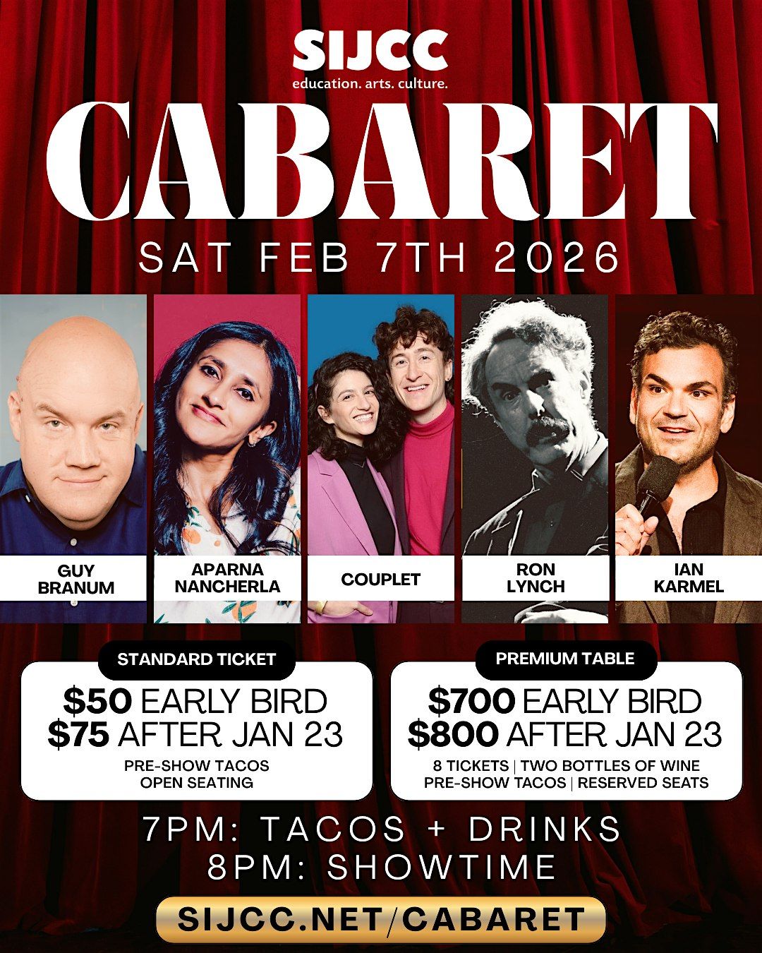 Get ready for a hilarious night in person with Guy Branum, Aparna Nancherla, and plenty more! This fun-packed cabaret is perfect if you're looking to laugh, chill, and enjoy some seriously good vibes. Don’t miss out on this epic comedy lineup at SIJCC. See you there!