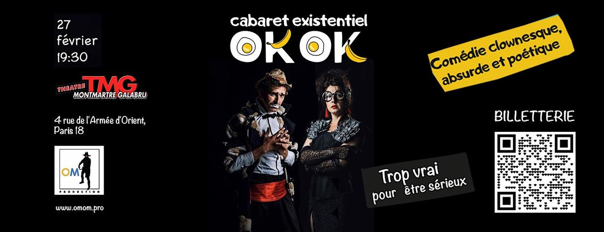 Viens vivre une soirée unique et pleine de surprises en présentiel ! Le Cabaret existentiel OK OK te plonge dans une ambiance décalée où l'absurde et le sérieux se mêlent. Attends-toi à des performances époustouflantes, des moments de réflexion et beaucoup de fun. Une expérience à ne pas manquer pour ceux qui aiment sortir des sentiers battus.