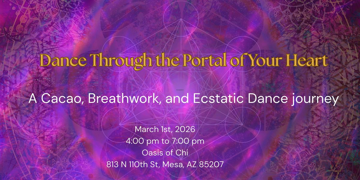 Dance through the portal of your heart and into the deeper truth of your soul. Guided by sacred cacao, breathwork, and the wild freedom of ecstatic dance, we will dive deep within to access the bliss and ecstasy that's already available to us when we finally stop, breathe, and listen. All while nestled in the magical Oasis of Chi in Mesa, AZ.