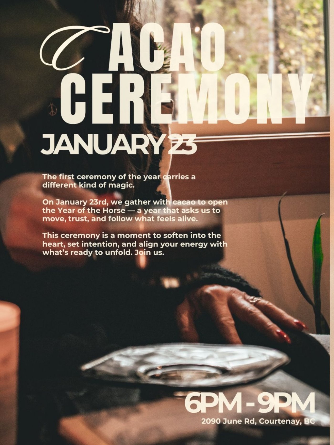 On January 23rd, we gather in circle with ceremonial cacao to intentionally open the Year of the Horse — a year of movement, momentum, courage, and trusting the path ahead. This ceremony is an invitation to slow down and listen, so that your next steps are guided by the heart rather than habit.