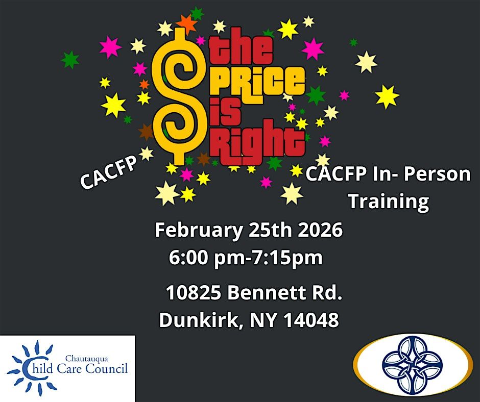 Welcome to CACFP The Price is Right event! Join us at 10825 Bennett Rd on February 25, 2026 at 6:00 PM (Eastern Time) for a fun-filled evening. Get ready to participate in exciting games and win amazing prizes. Don't miss out on this opportunity to have a blast with friends and family. Mark your calendars and we'll see you there!
