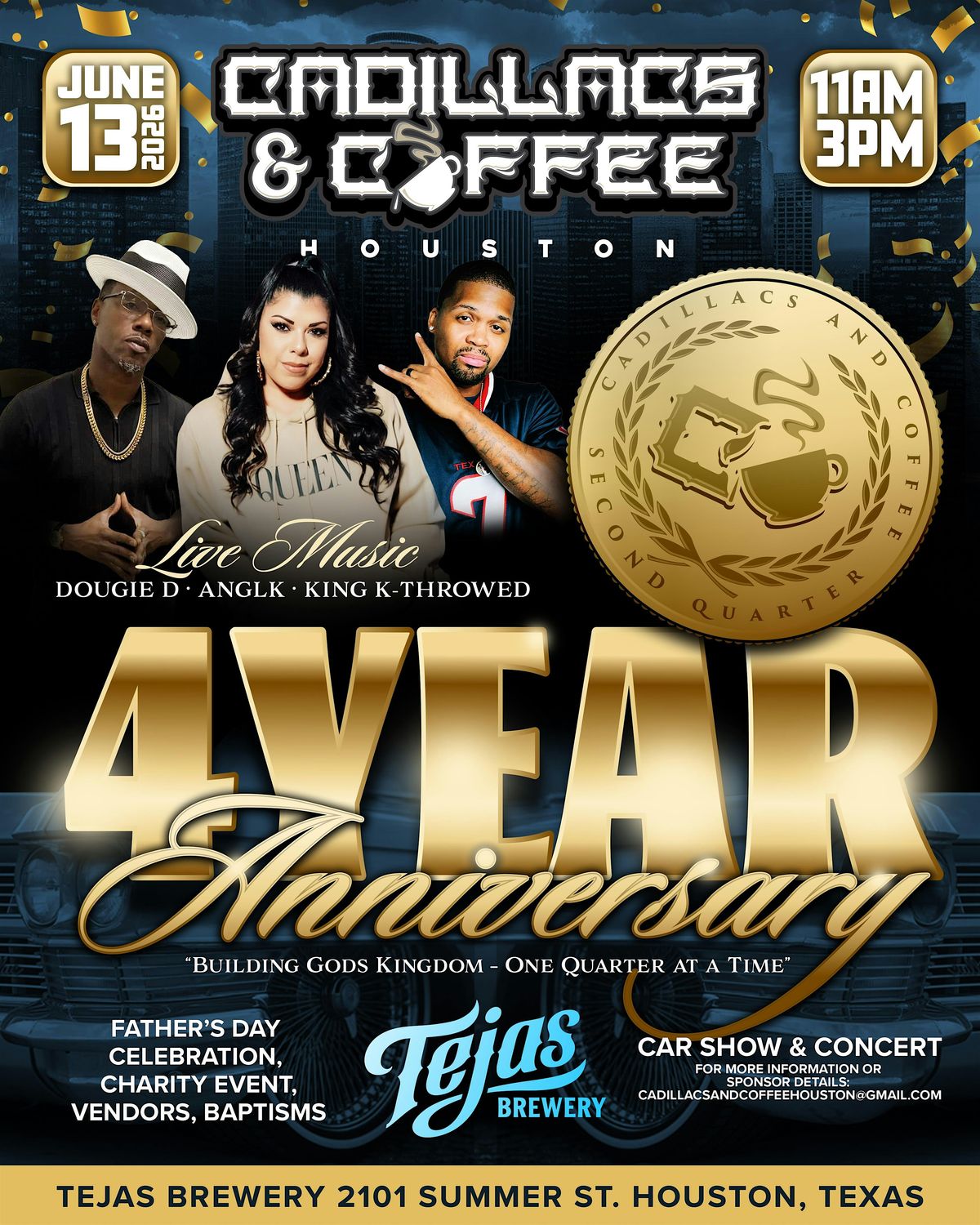Cadillacs & Coffee Houston proudly presents our 4 Year Anniversary Second Quarter Event — a one-of-a-kind experience bringing together cadillac culture, community, and faith.