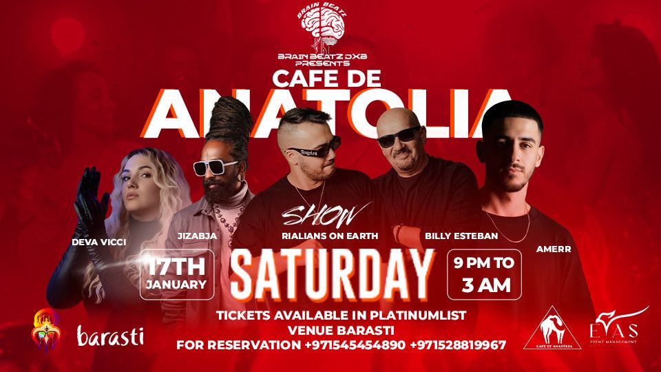Get ready for an immersive musical experience as Cafe De Anatolia brings its signature sound to Dubai. This special night at Barasti Beach blends Afro Tech, melodic techno, and the soulful energy of world music.