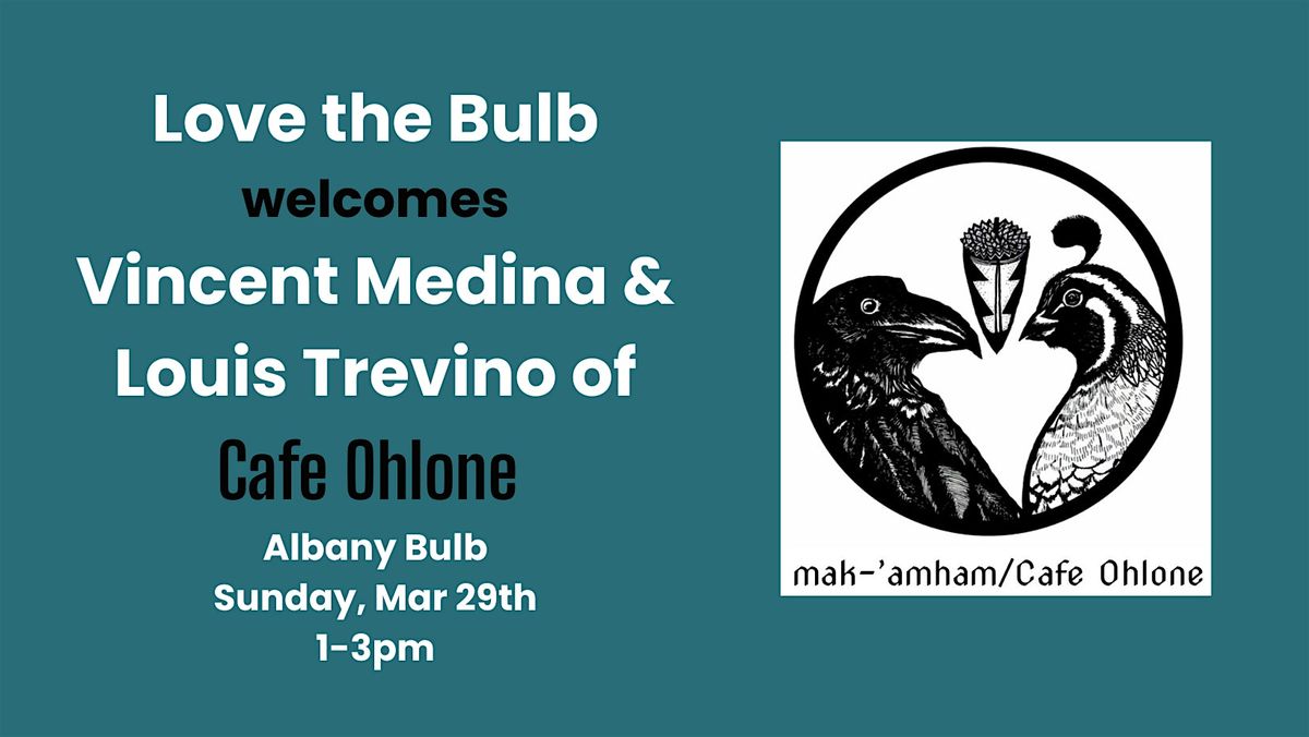 Join Love the Bulb for a special gathering at the Albany Bulb, where Vincent Medina and Louis Trevino — co-founders of mak-'amham/Cafe Ohlone and the mak-warép Ohlone Land Conservance and and leaders of UC Berkeley’s innovative 'ottoy Initiative — will cover Ohlone culture, past and present. The will share about the deep significance of the creeks, wetlands, and Bay waters that have sustained Ohlone people and culture for thousands of years.
