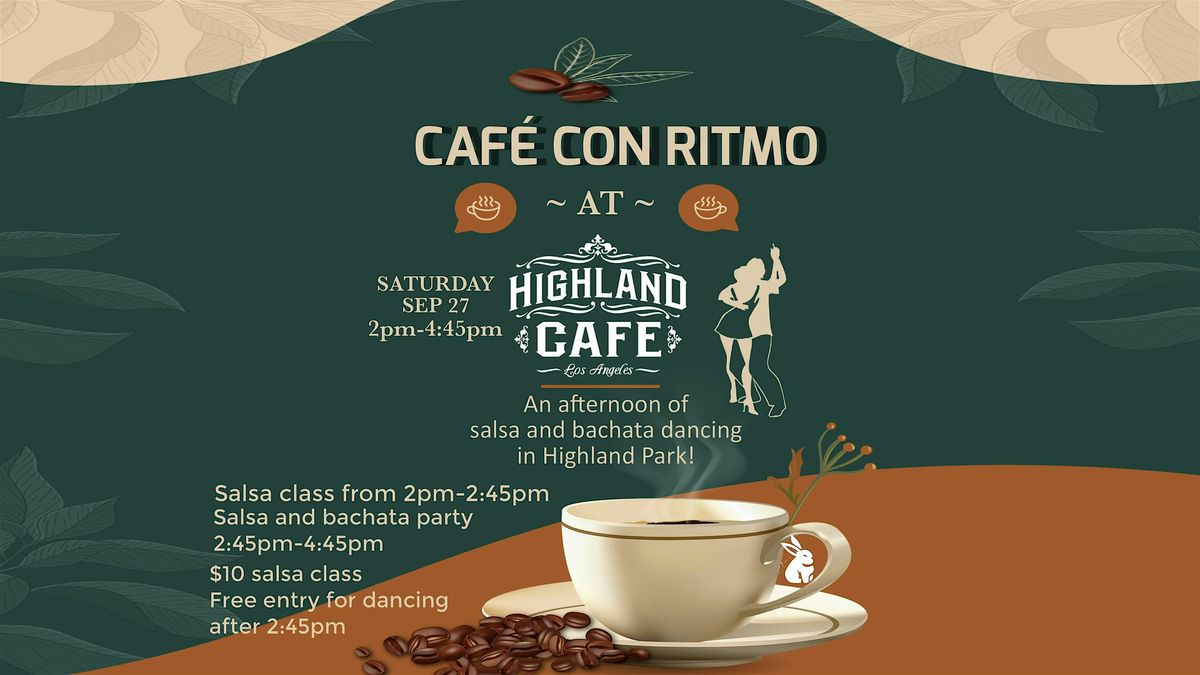 Welcome to CAFÉ CON RITMO! Join us for an afternoon of Salsa and Bachata Dancing at The Highland Cafe. Get ready to move your hips, meet new friends, and enjoy some delicious coffee. Whether you're a seasoned dancer or just starting out, this event is perfect for everyone.