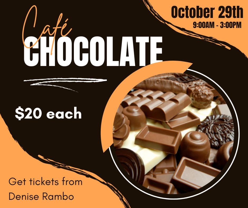 Try thinking about this—hanging out at a café with friends while enjoying your favorite hot beverage, nibbling on a brownie or bit of chocolate pie, laughing, talking, and relaxing together—it’s a perfect gathering! Join us at Café Chocolat.It’s a retreat where we’ll focus on God’s grace — with a bit of chocolate sprinkled on top.