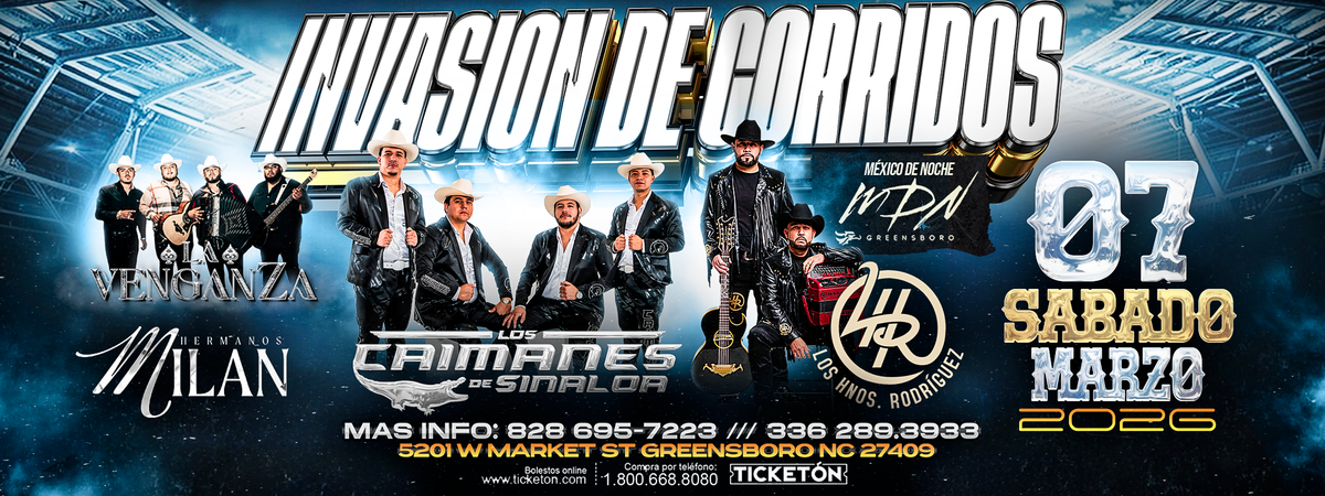 Join us for 'CAIMANES DE SINALOA , HNOS RODRIGUEZ & MAS ', a groundbreaking exciting event at MDN Night Club, Greensboro, NC, United States. This event is a cornerstone of innovation in the industry. Engage with experts, explore new horizons, and elevate your understanding of the exciting landscape. Book your attendance today and be part of something extraordinary. #CAIMANESDESINALOA,HNOSRODRIGUEZ&MAS #event #exciting #GreensboroEvents #NCEvents