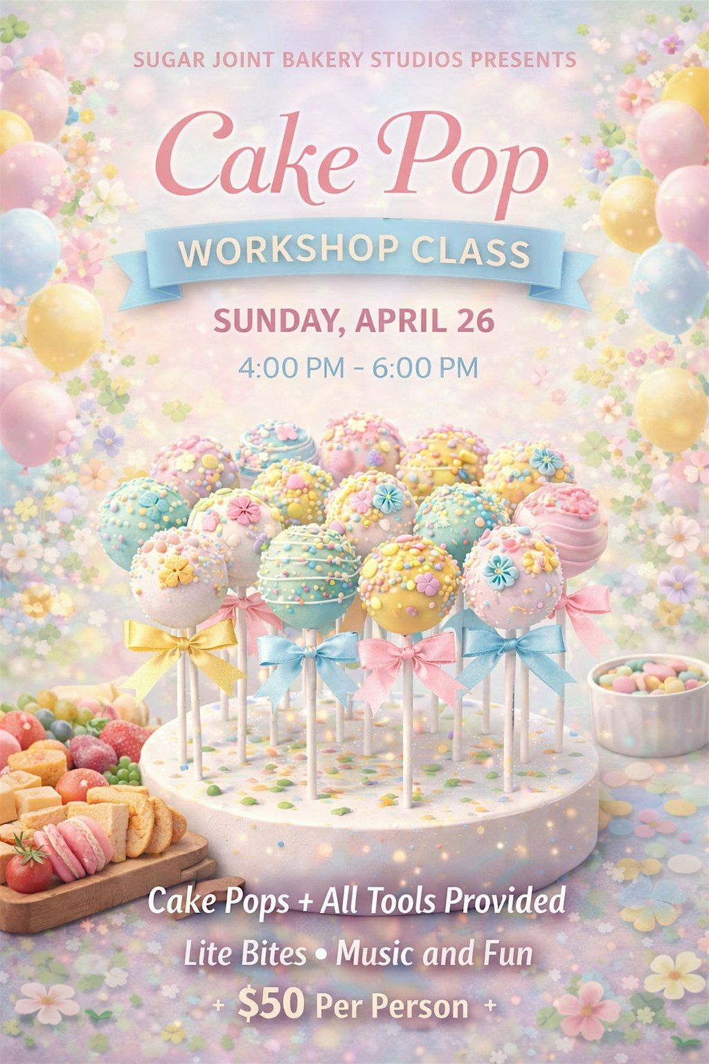 Join us in person for a fun and hands-on Cake Pops Workshop! Whether you're a baking newbie or a pro, you'll love creating these sweet treats with us.
