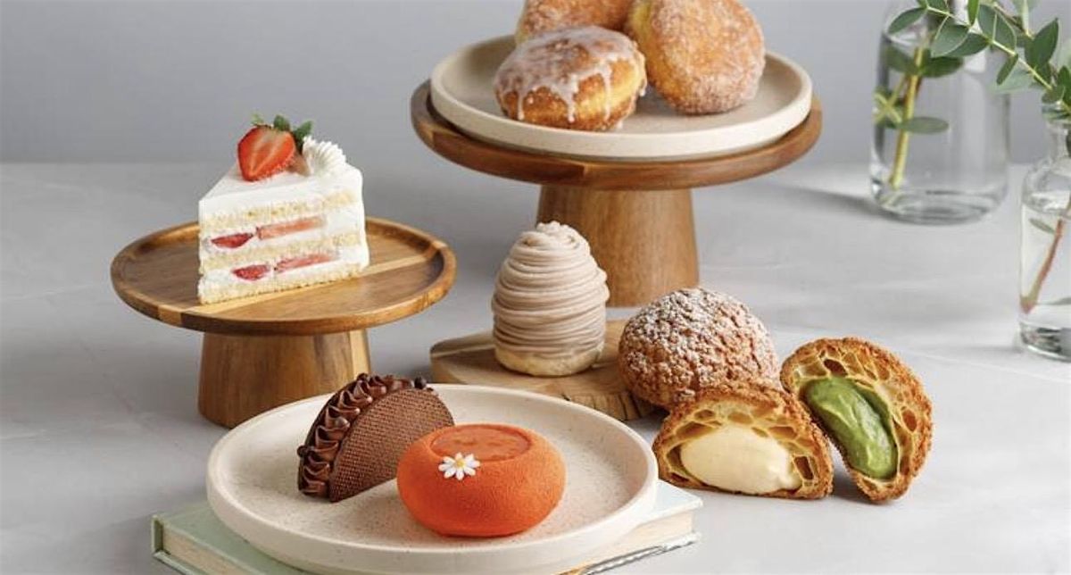 The selection may include a mix of styles such as Japanese-style cakes, classic French pastries, Italian desserts, and other unique treats. We try to keep the flavors balanced so everyone can experience a variety of different dessert styles.