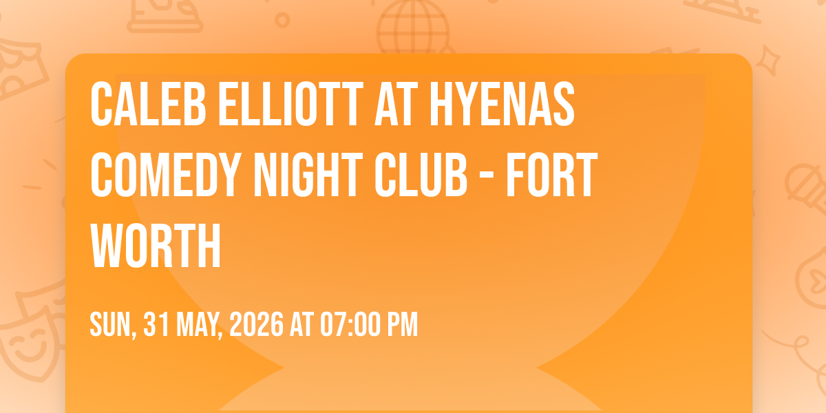 β¨ Discover the extraordinary at Caleb Elliott at Hyenas Comedy Night Club - Fort Worth, where magic meets reality in ways you've never imagined! ποΈ Set in Hyenas Comedy Night Club - Fort Worth nestled in bustling Fort Worth, TX, this event promises to be a landmark occasion. π Taking place on May 31st, 2026 at 07:00 PM, it's going to create an atmosphere where every moment becomes a cherished memory. π Immerse yourself in an experience crafted with attention to every detail, designed to surprise and delight at every turn. They have worked tirelessly to ensure this event exceeds all expectations, bringing together elements of entertainment, innovation, and pure joy. π Don't miss your chance to be part of this remarkable journey!