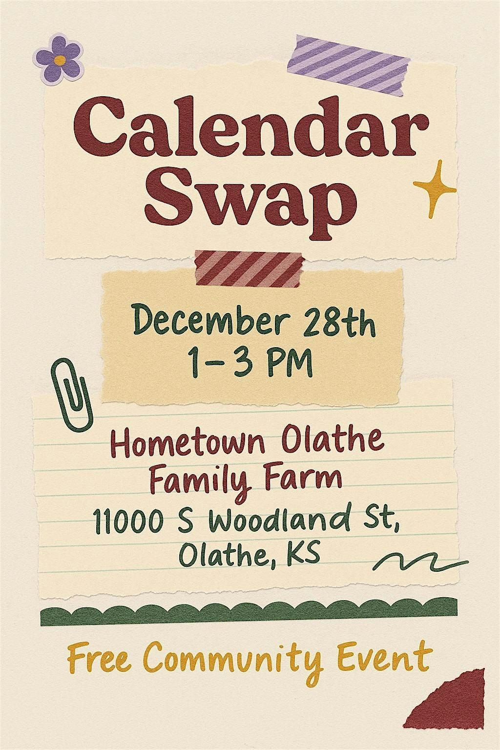 Dec 28 | 1–3 PM ✨ Calendar Swap at Hometown Olathe Family Farm! Bring unused 2026 calendars, trade, decorate & start the year inspired. Fr