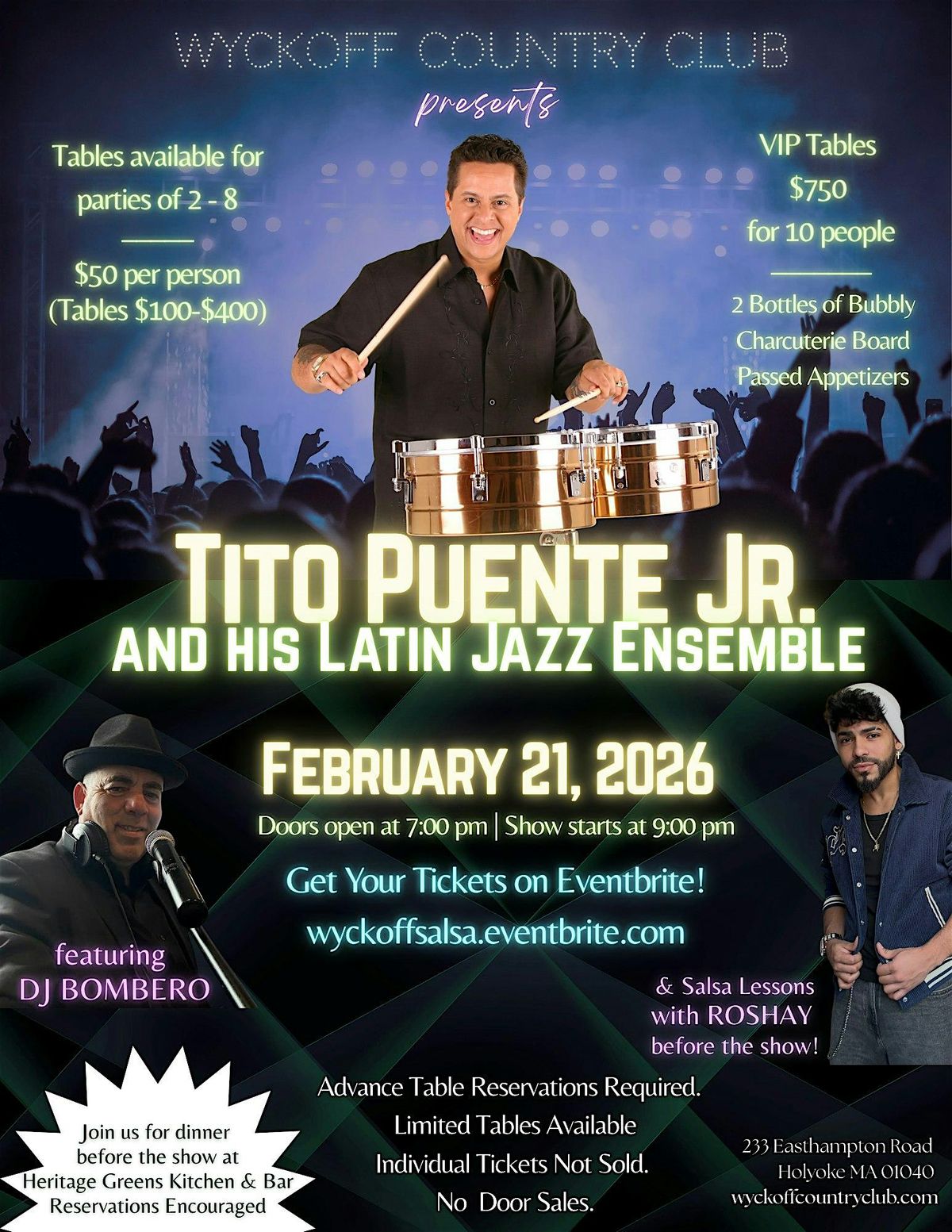 Join us for an unforgettable night of Latin music & dancing at Wyckoff Country Club with Tito Puente Jr. & his Latin Jazz Ensemble!