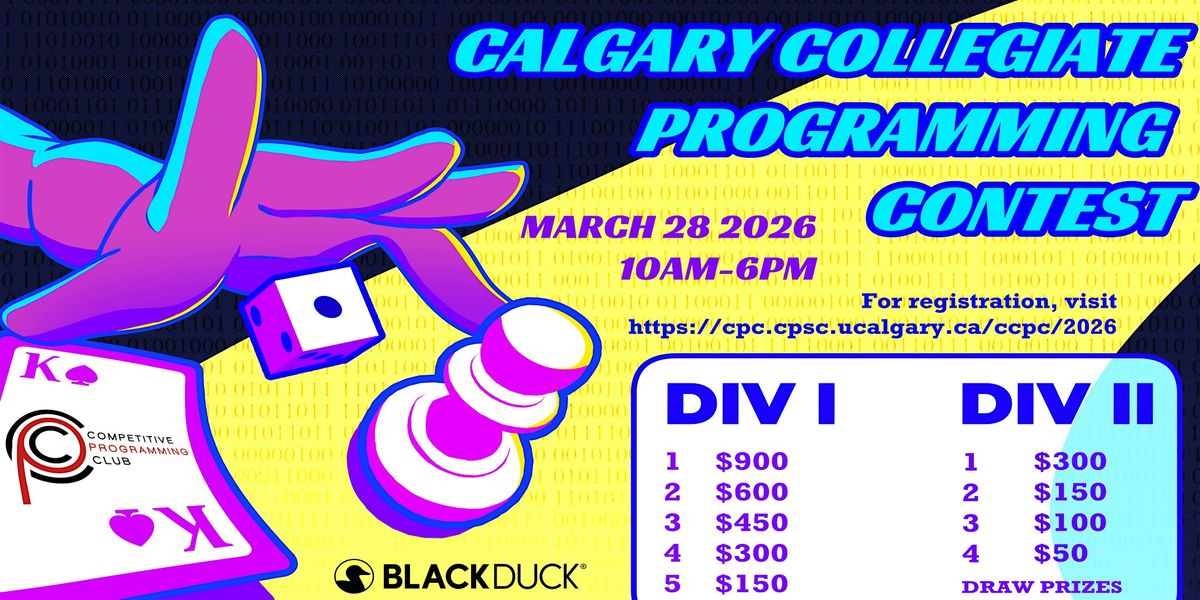 Full information on our contest website: https://cpc.cpsc.ucalgary.ca/contests/ccpc/2026/