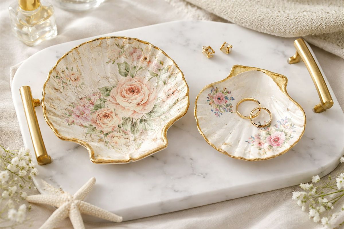 Using natural seashells and simple techniques like decoupage, painted details, or delicate transfers, you’ll create two unique pieces perfect for holding rings, earrings, or small everyday items.