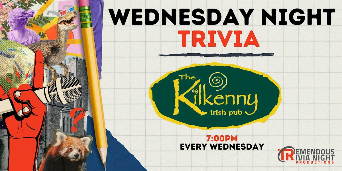 Ready to flex your brain and have a blast with friends? Look no further than Wednesday night pub trivia at The Kilkenny Irish Pub at7pm. Join us for six rounds of trivia and name that tune. From random factoids to classic hits, you'll never know what questions we'll throw your way!