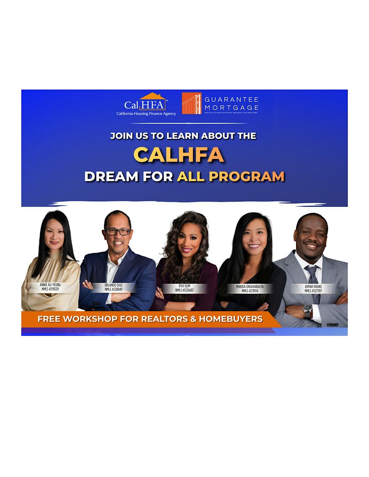 Join us for a FREE educational workshop designed for realtors and homebuyers who want to learn more about the CalHFA Dream For All down payment assistance program.