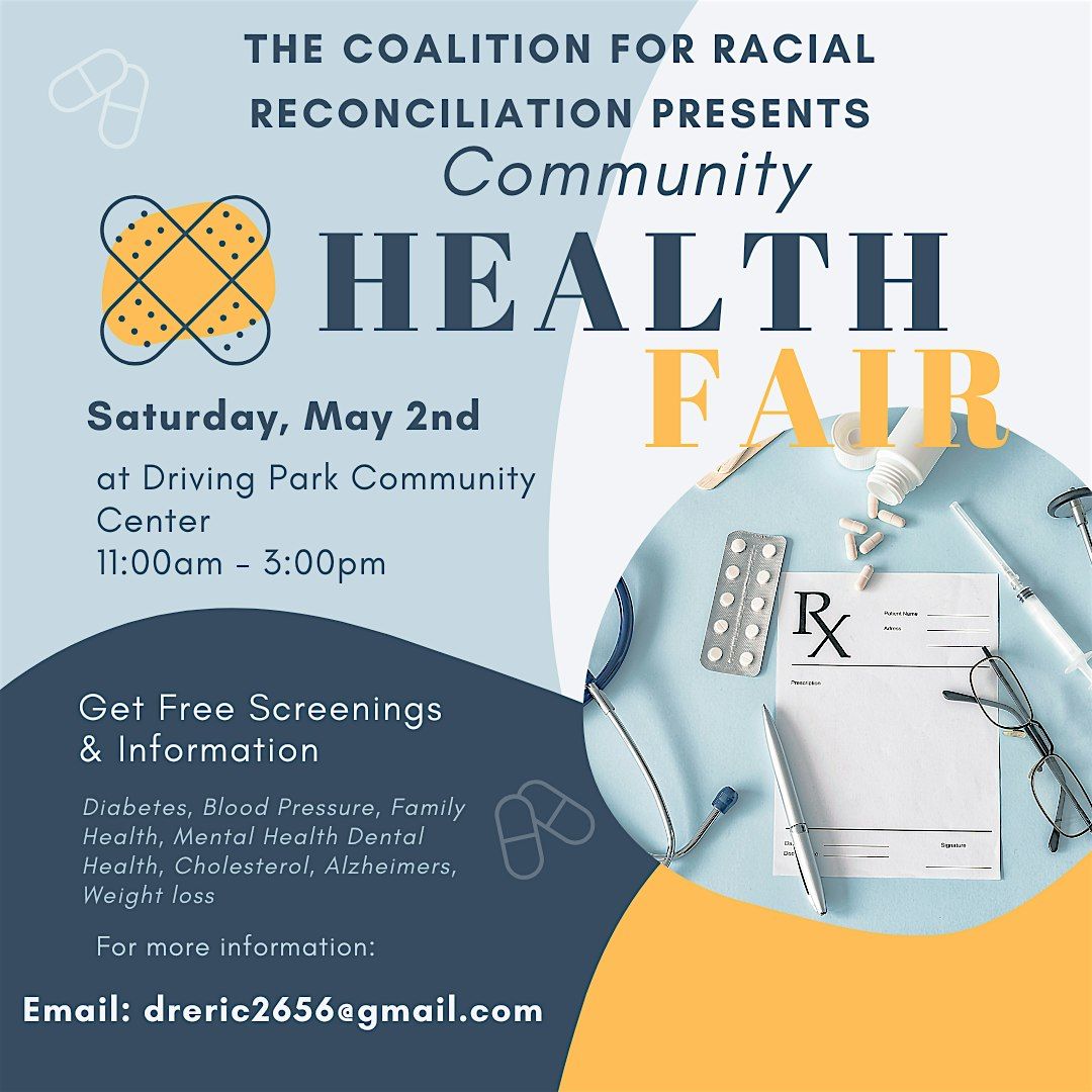 The Coalition for Racial Reconciliation is seeking health organizations, wellness providers, and community resource agencies to participate in our 3rd Annual Community Health Fair.