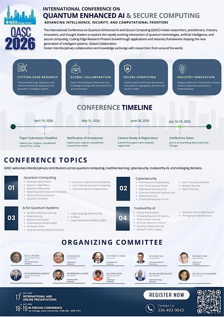 Chicago has emerged as one of the world’s leading quantum hubs, with a rare concentration of research, government support, startups, and industry investment. Excited to share that QASC 2026, the International Conference on Quantum Enhanced AI and Secure Computing, is officially open for paper submissions!.