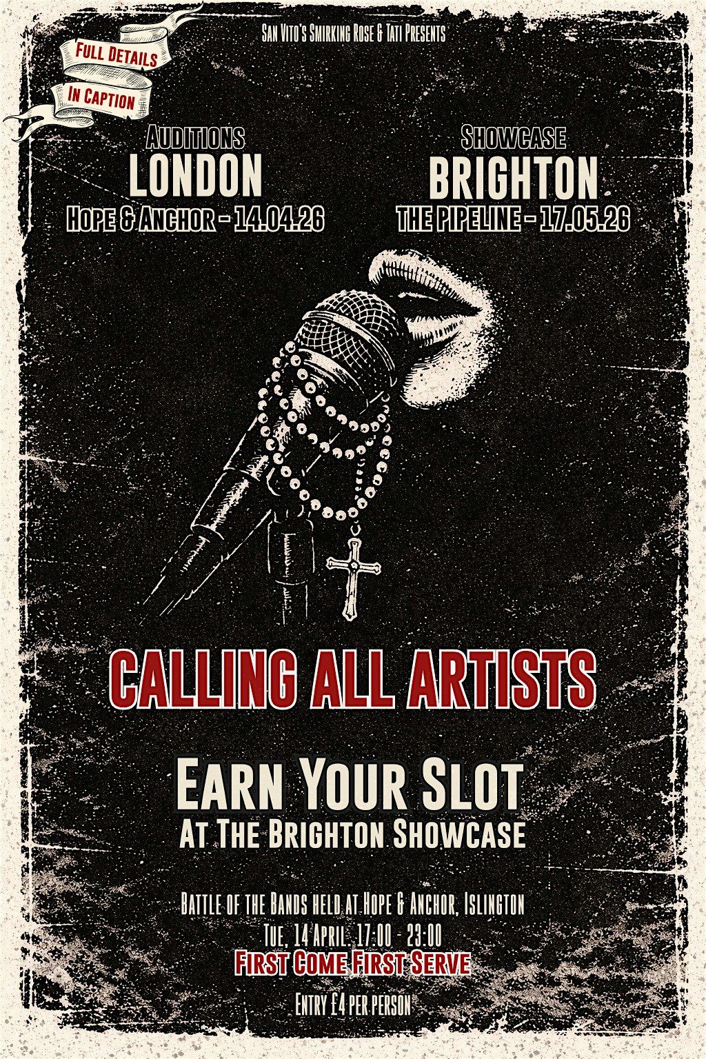 Anyone has a chance of winning one of the final 6 remaining slots at our Brighton showcase on 17.05.2026... all you have to do is turn up, plug in and perform at our Battle of the Bands night and show us what you're made of!