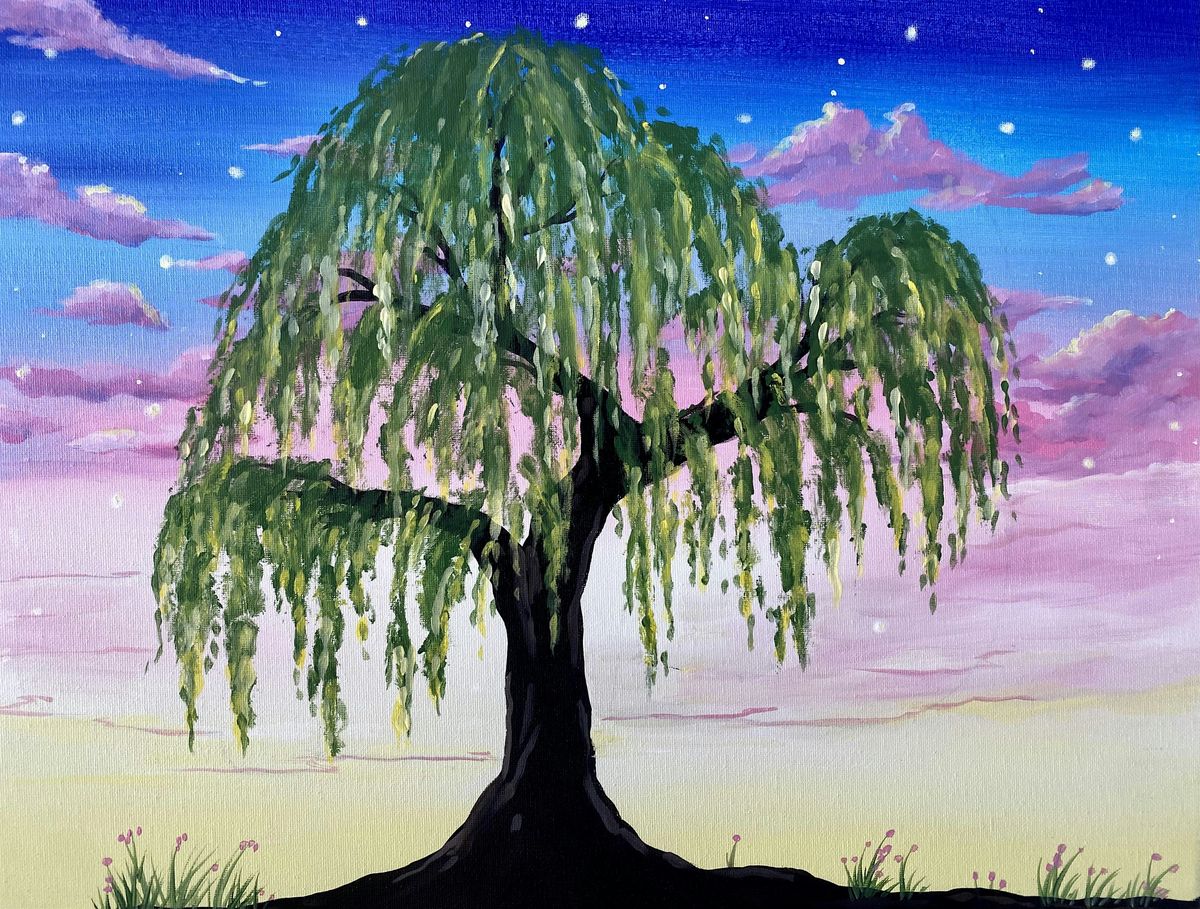 Calm Willow Paint and Sip Workshop With Step by Step Guidance