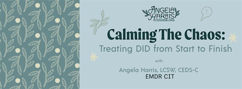 Calming the Chaos: Treating DID from Start to Finish with Angela Harris Counseling discusses development of DID, co-occurring diagnoses, differential diagnosis, assessment tools, interventions, and treatment goals through the lens of nervous-system regulation to calm the inner world. Specific approaches for parts identification and exploration will be provided through creative tools such as sand tray, meeting place, and development of internal attachment resources. Lived experience perspectives will also be integrated throughout the training. This program will include opportunities for hands-on application through practicum and case study discussions.