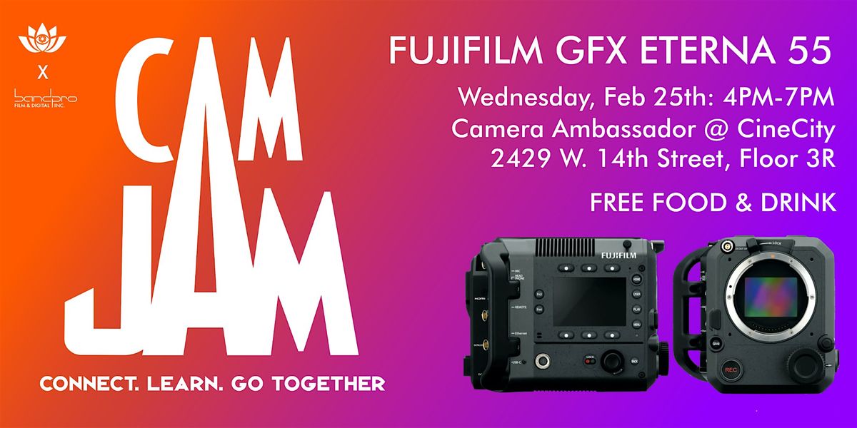 Join us in partnership with BandPro Film & Digital, on Wednesday, Feb 25th at 4-7 PM as we explore the Fujifilm GFX Eterna 55!
